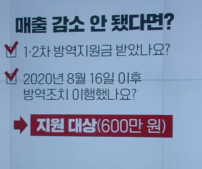 2020년 8월 16일 이후 방역조치를 이행하였으면 600만 원의 지원 대상입니다.