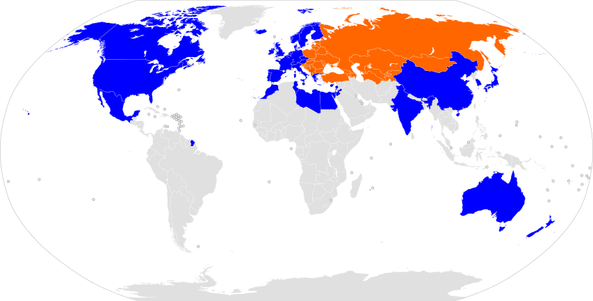 파랑 - 자금 조달하는 나라, 빨강 - 자금을 받는 나라