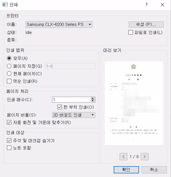 곧이어 등장하는 인쇄 창에서 PDF로 저장하거나 인쇄합니다.