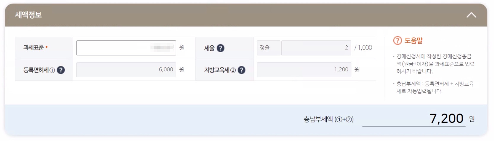 과세표준은 오른쪽에 있는 도움말을 참고로 작성하시면 됩니다.
