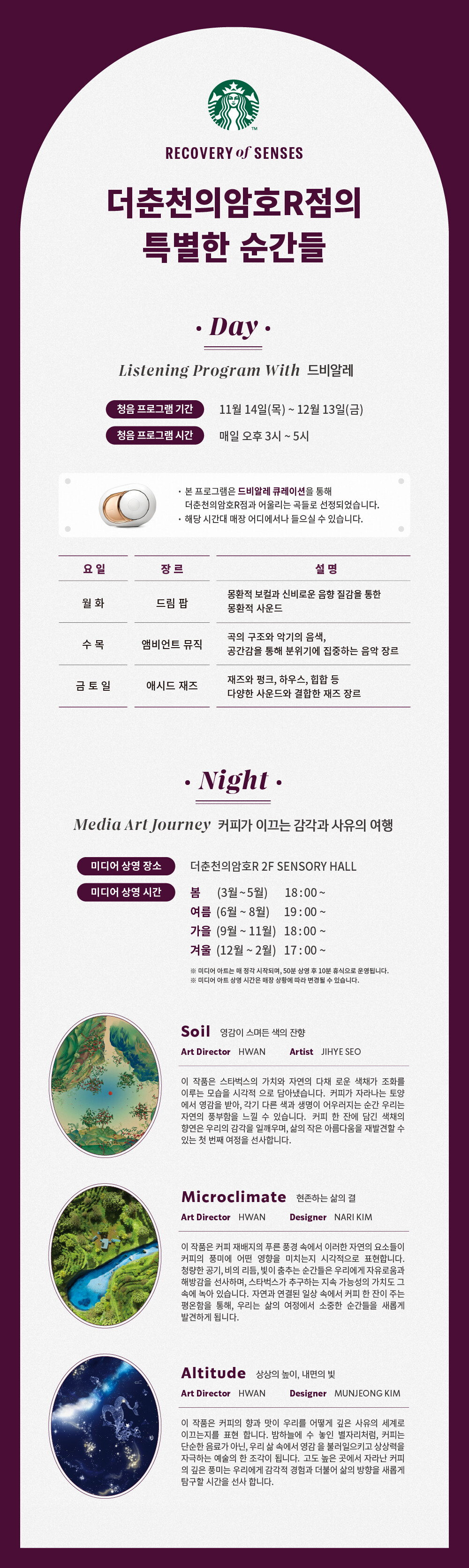 스타벅스 코리아는 '더 춘천의암호R'점을 통해 춘천 지역을 찾는 여행객들에게 새로운 경험을 선사하고 있습니다. 기존 매장보다 30% 이상 더 많은 고객이 스페셜 스토어를 찾는다고 하니, 그만큼 차별화된 서비스와 경험을 제공한다는 것이겠죠? 이번 겨울에는 따뜻한 커피 한 잔과 함께 춘천의 낭만을 만끽해보세요❄️☕️.