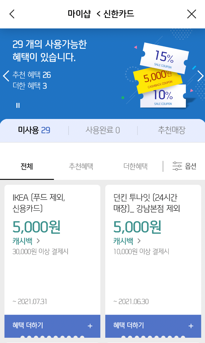 그러면 더한혜택에서 선택한 혜택들을 보실 수 있어요!