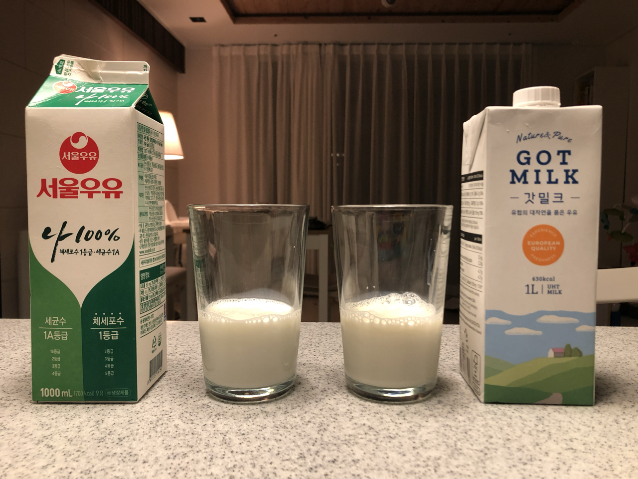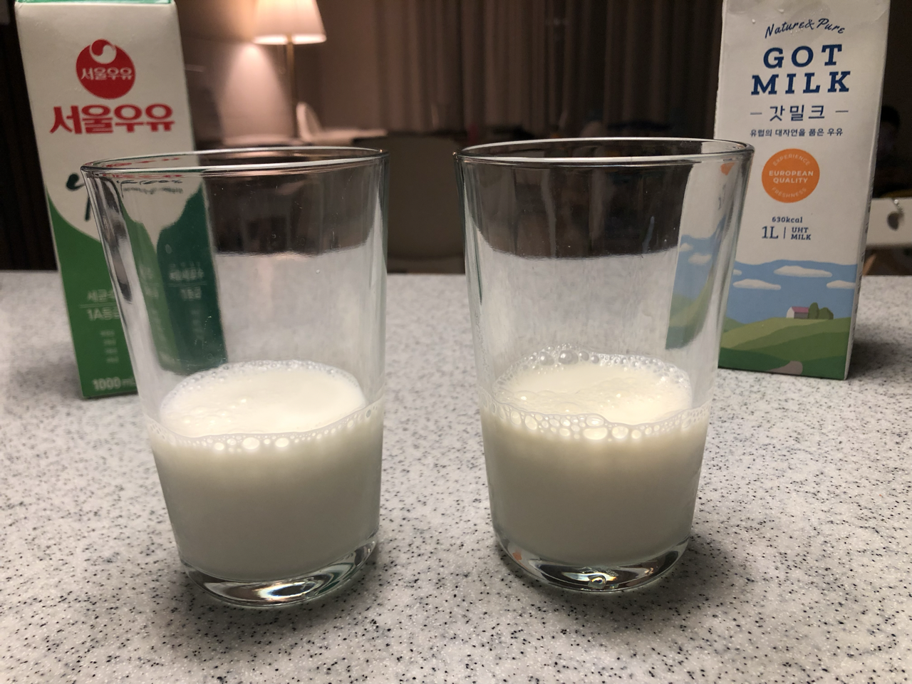 서울우유와 갓밀크 맛을 비교해보겠습니다.
