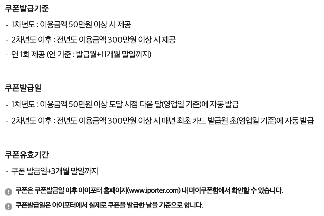 - 쿠폰은 쿠폰발급일 이후 아이포터 홈페이지(www.iporter.com) 내 마이쿠폰함에서 확인할 수 있습니다.
