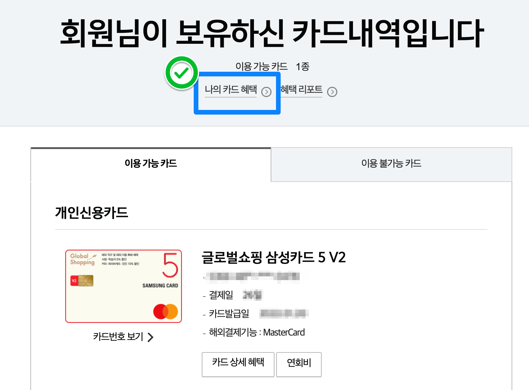 그러면 이런 창이 뜨는데 나의 카드 혜택을 눌러줍니다.